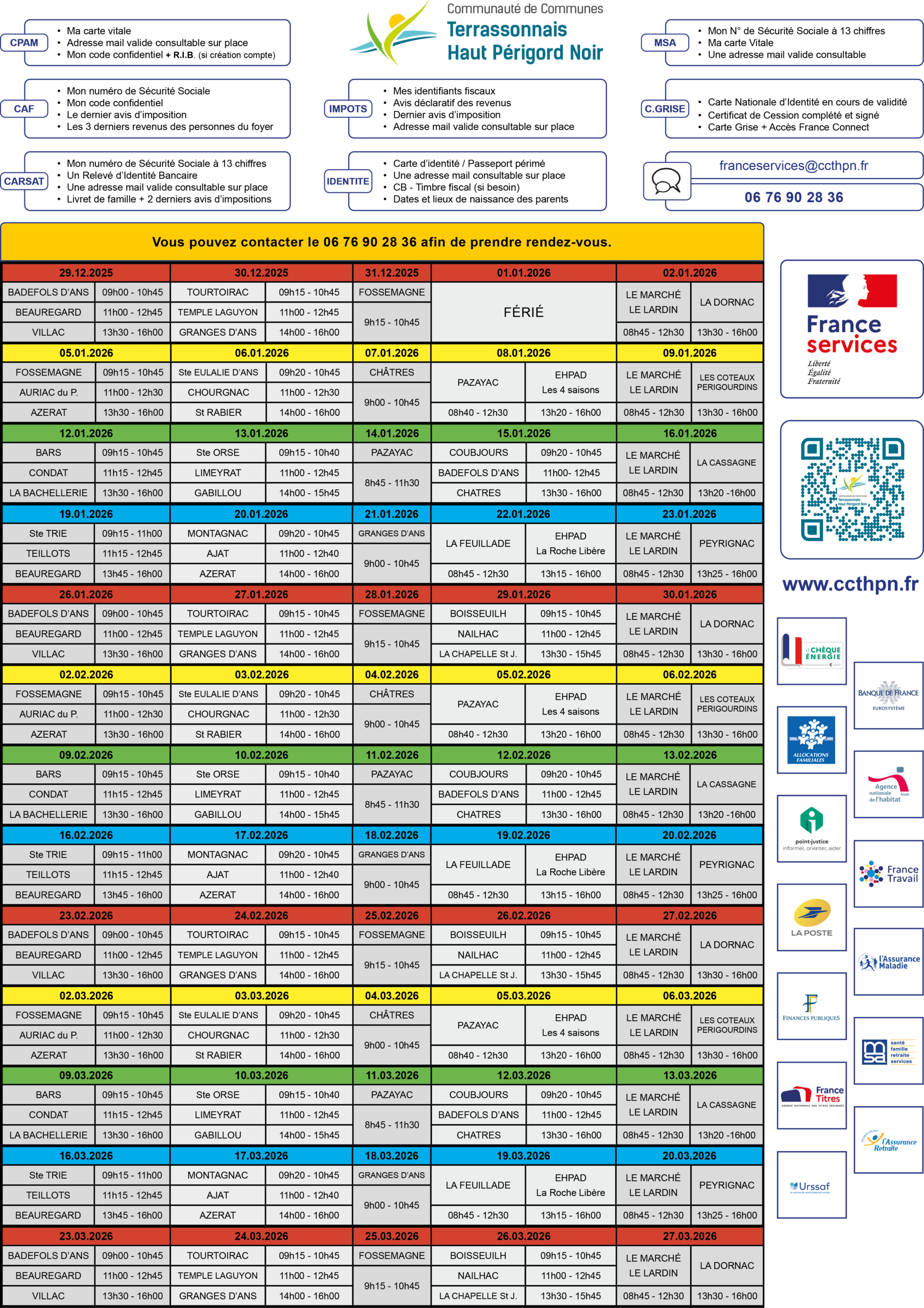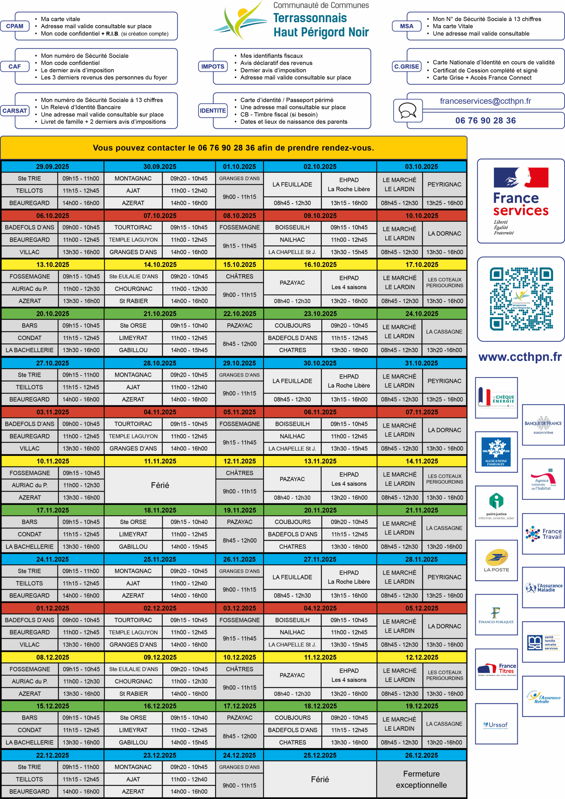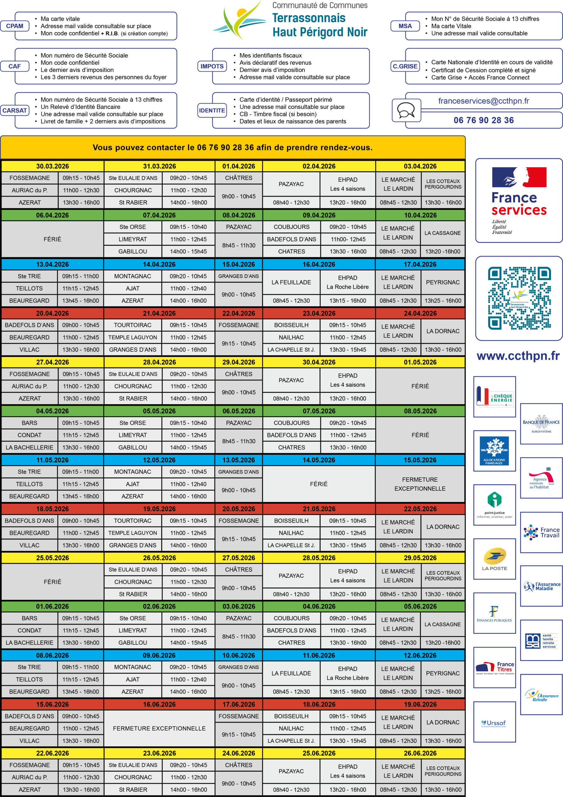 Les agents CCTHPN de cet Espace « France Services » Itinérant sont présents pour trouver des solutions à vos demandes dans de nombreux domaines comme :