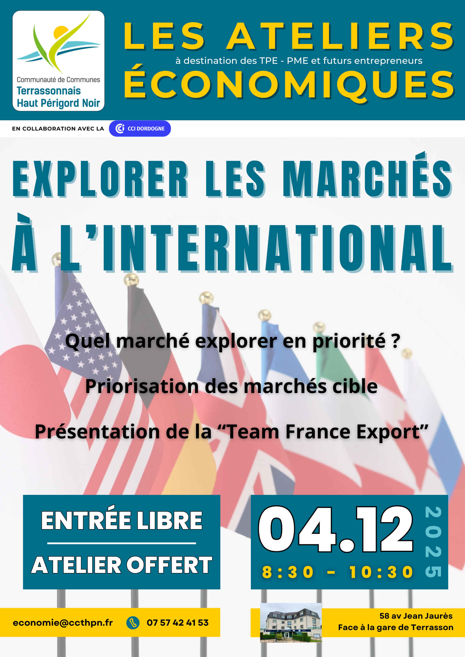 Le prochain rendez-vous aura lieu le jeudi 6 novembre 2025, de 8h30 à 10h30, à Terrasson, sur le thème : Étude de marché – Implanter son business.
