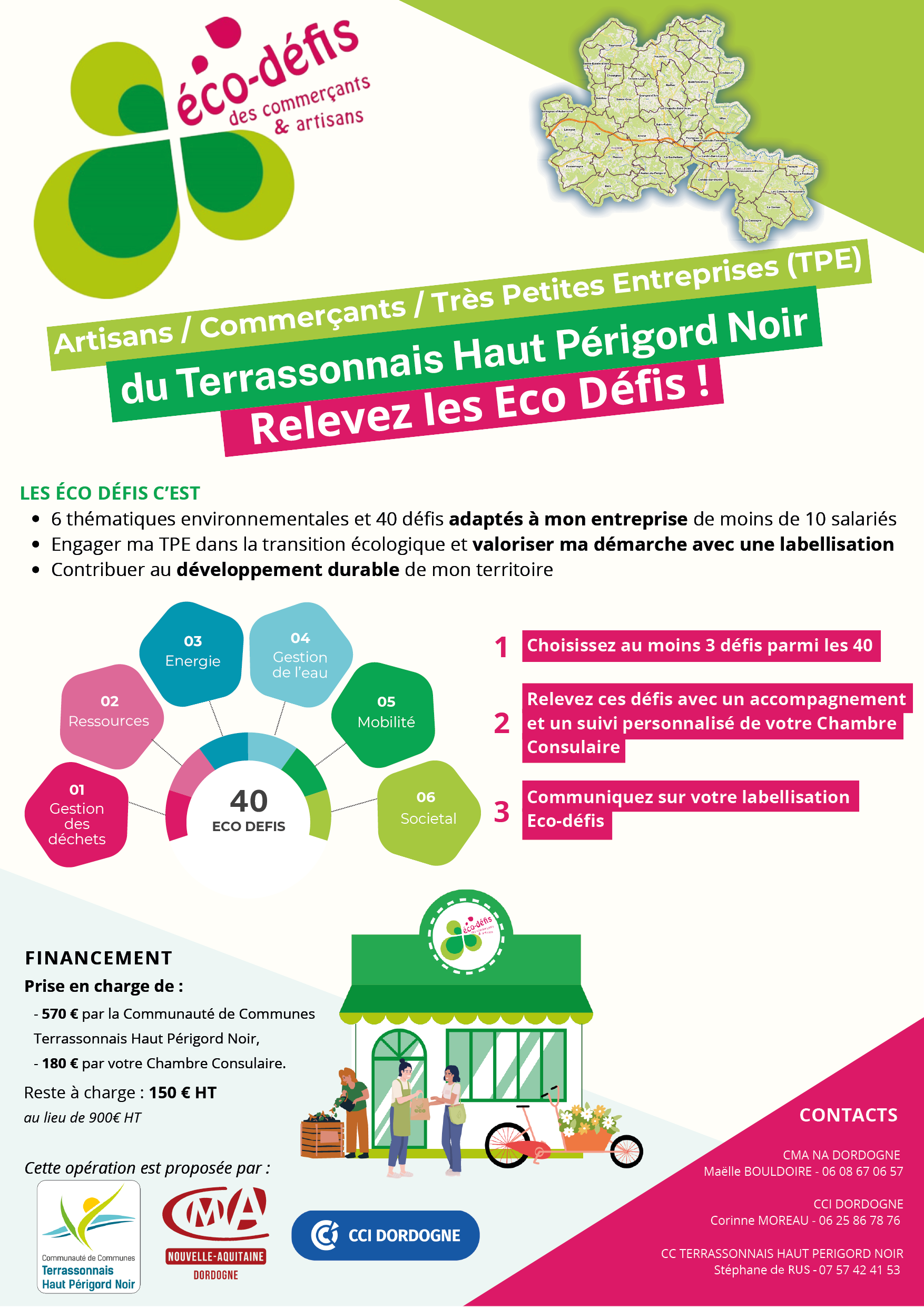 En partenariat avec la Chambre de Commerce et d’Industrie de la Dordogne (CCI 24) et la Chambre de Métiers et de l’Artisanat de la Dordogne (CMA 24), la CCTHPN lance le dispositif Éco-Défis sur son territoire.