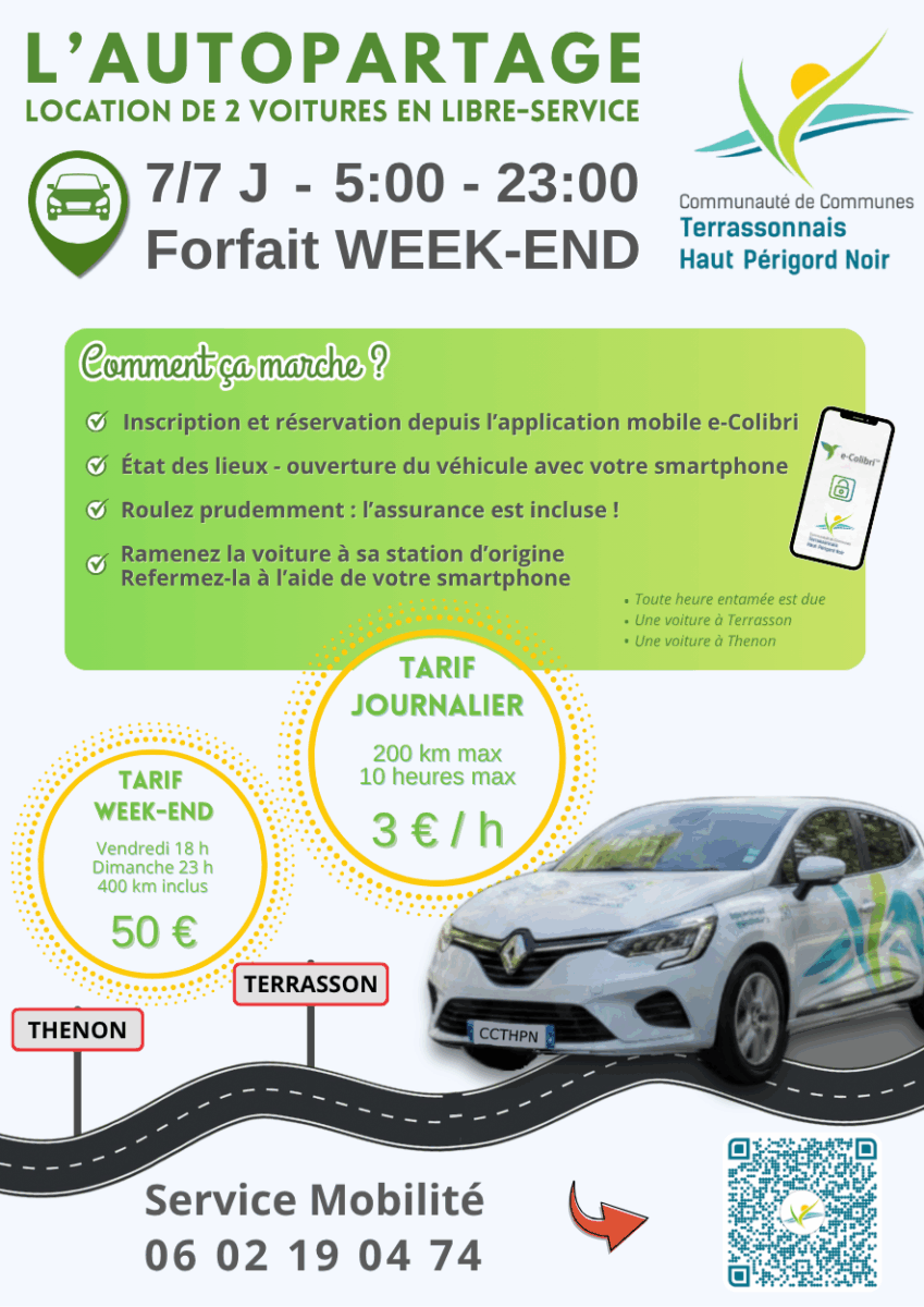 - Autopartage en partenariat avec l’association ADER Mobilité